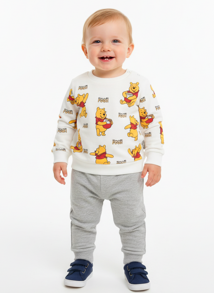 1692 - Ayı desenli Aylık Erkek Bebek Takım - Krem - Gri (1692)
