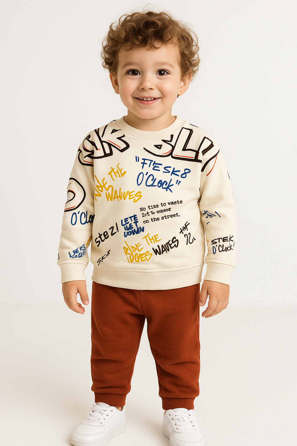 1702- Karışık Desenli Erkek Çocuk Takımı - Acı Kahve (1702)