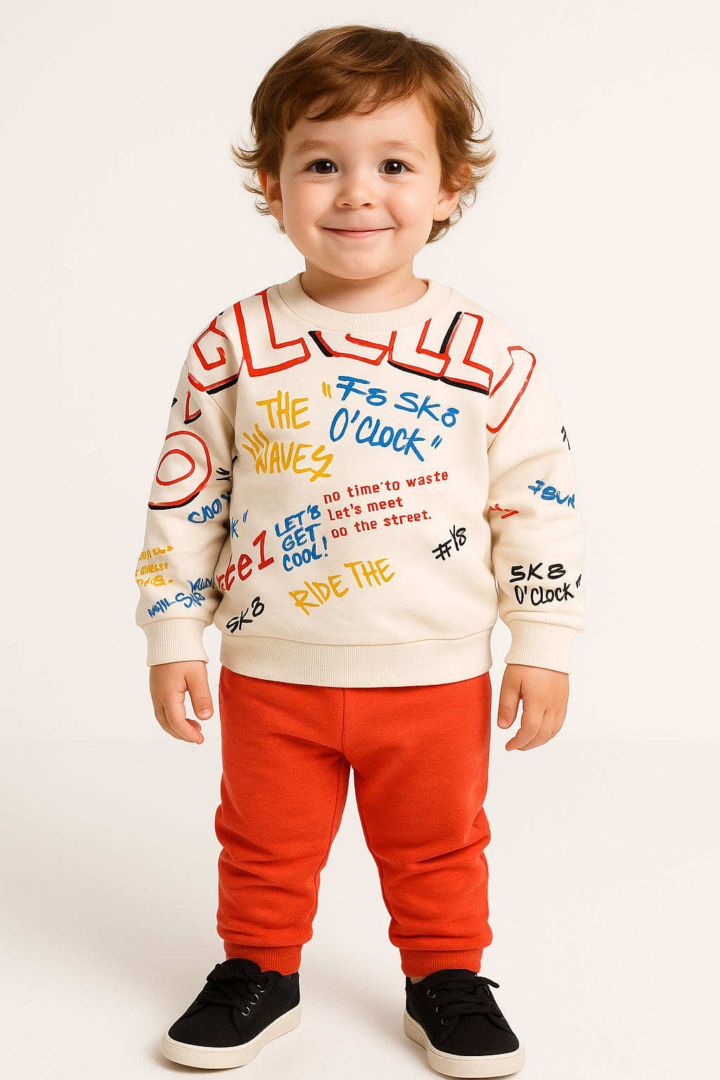 1702- Karışık Desenli  Erkek Çocuk Takımı - Turuncu