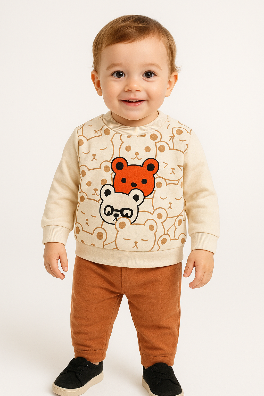 1713 - Benekli Ayı Baskılı Aylık Erkek Bebek Takım - Kahve (1713)