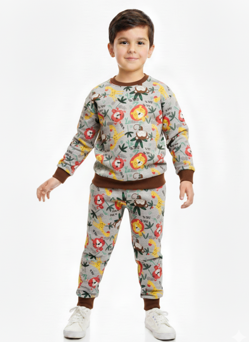 1716 - Maymun Desenli Erkek Çocuk Takım - Gri - Kahve (1716)