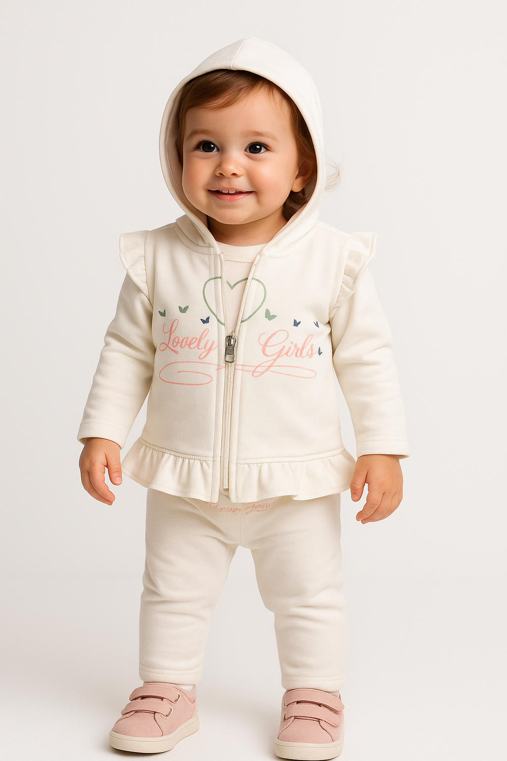 1751- Omzu Fırfırlı Üçlü Aylık Kız Çocuk Takımı - Krem (1751)
