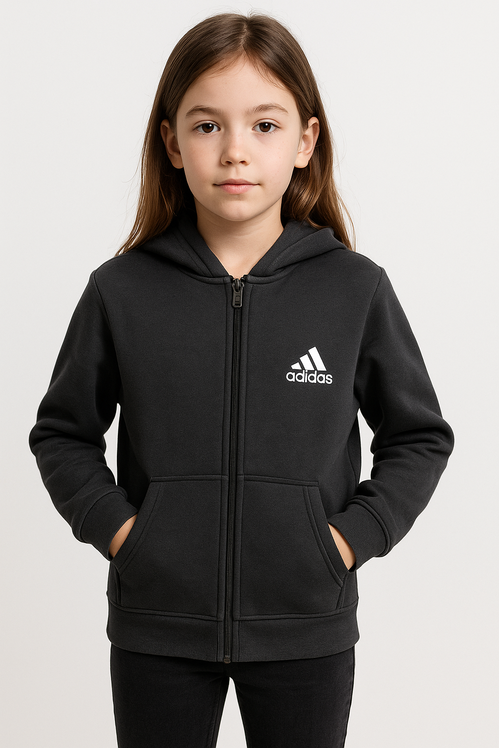 1755 - Ads Baskılı Kapüşonlu Üç İp Unisex Çocuk Hırkası - Füme (1755)