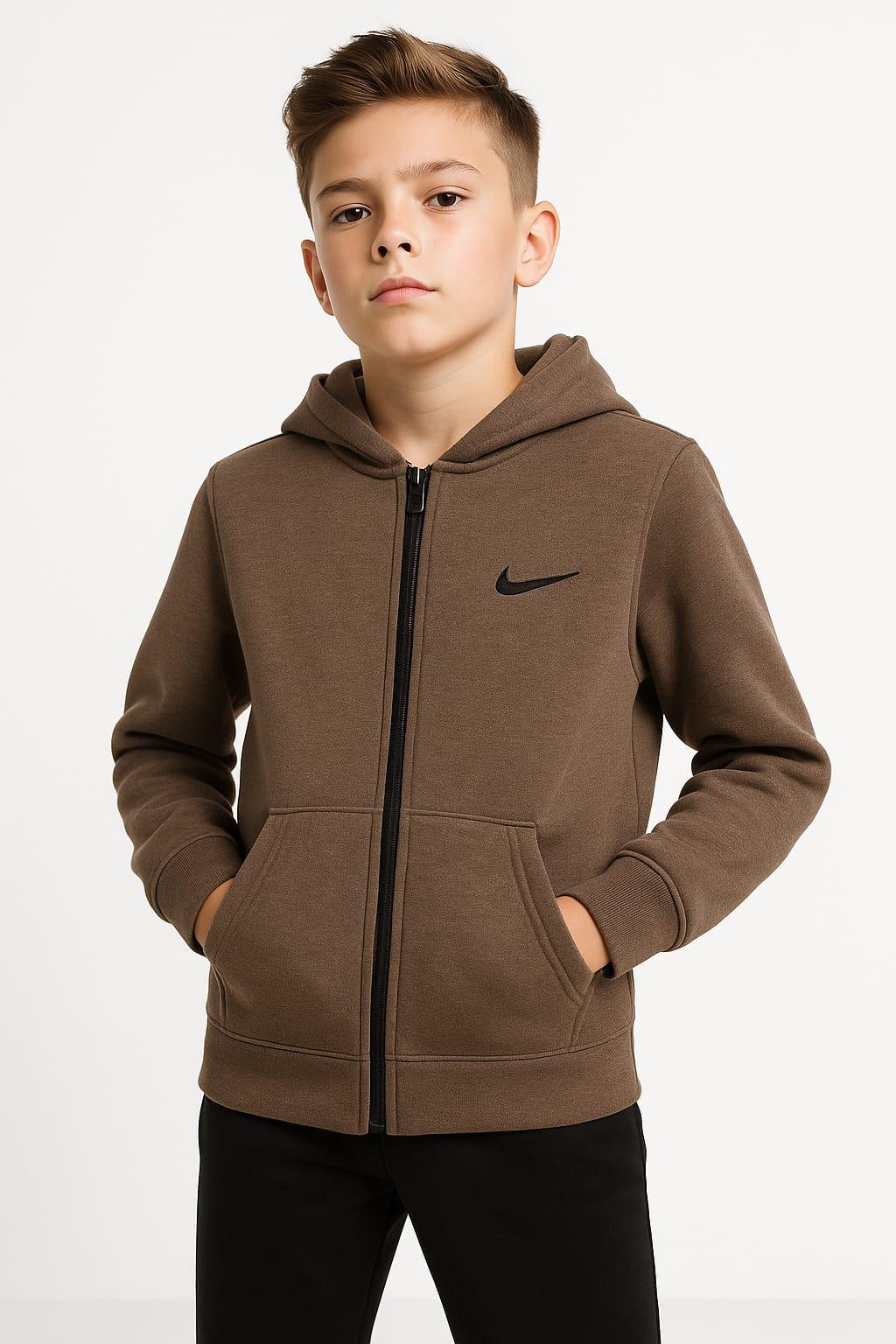 1756 - NK Baskılı Kapüşonlu Üç İp Unisex Çocuk Hırkası - Kahve (1756)