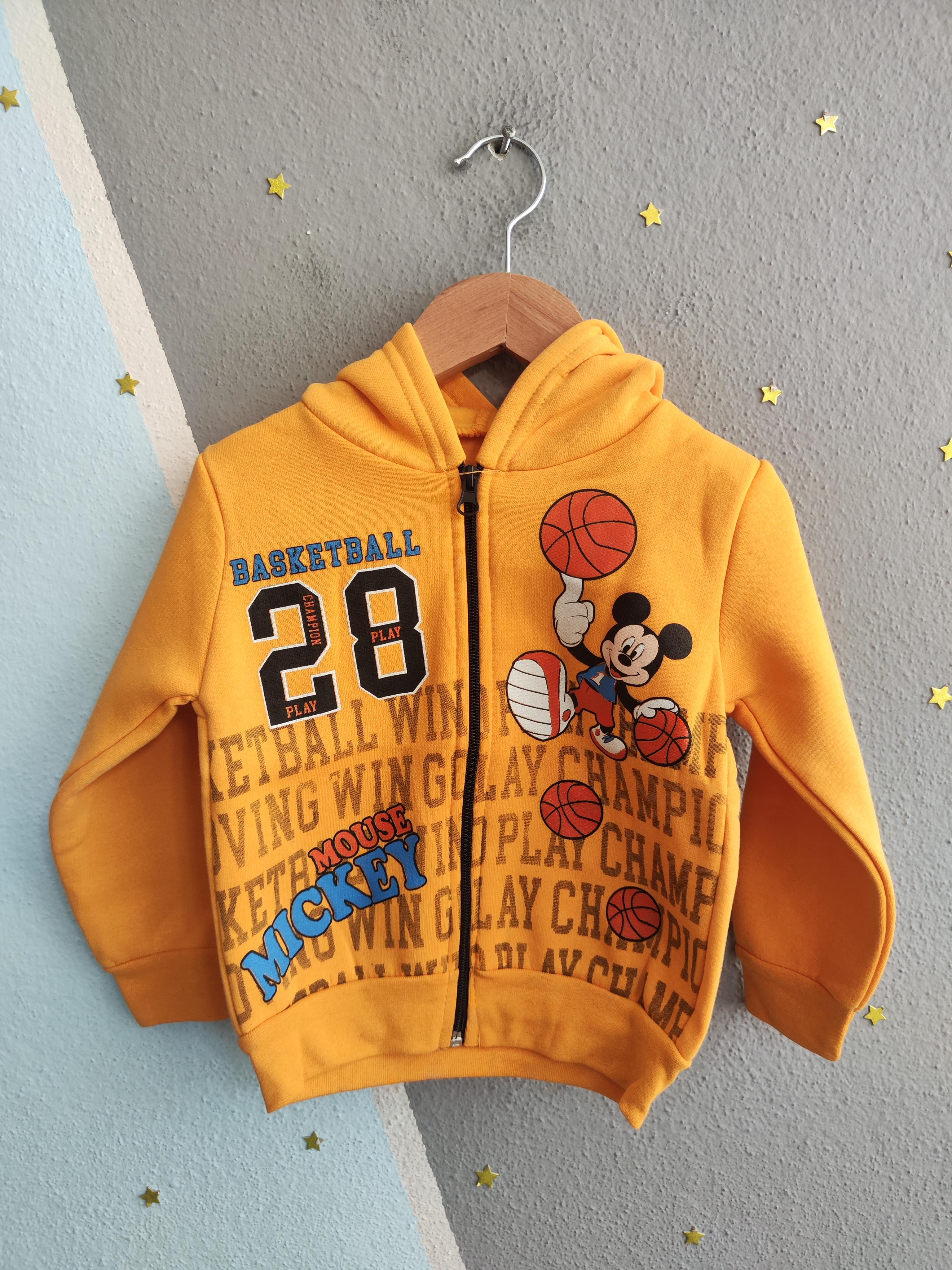 1762- Karakter Baskılı Kapüşonlu Erkek Çocuk Hırkası - Sarı (1762)