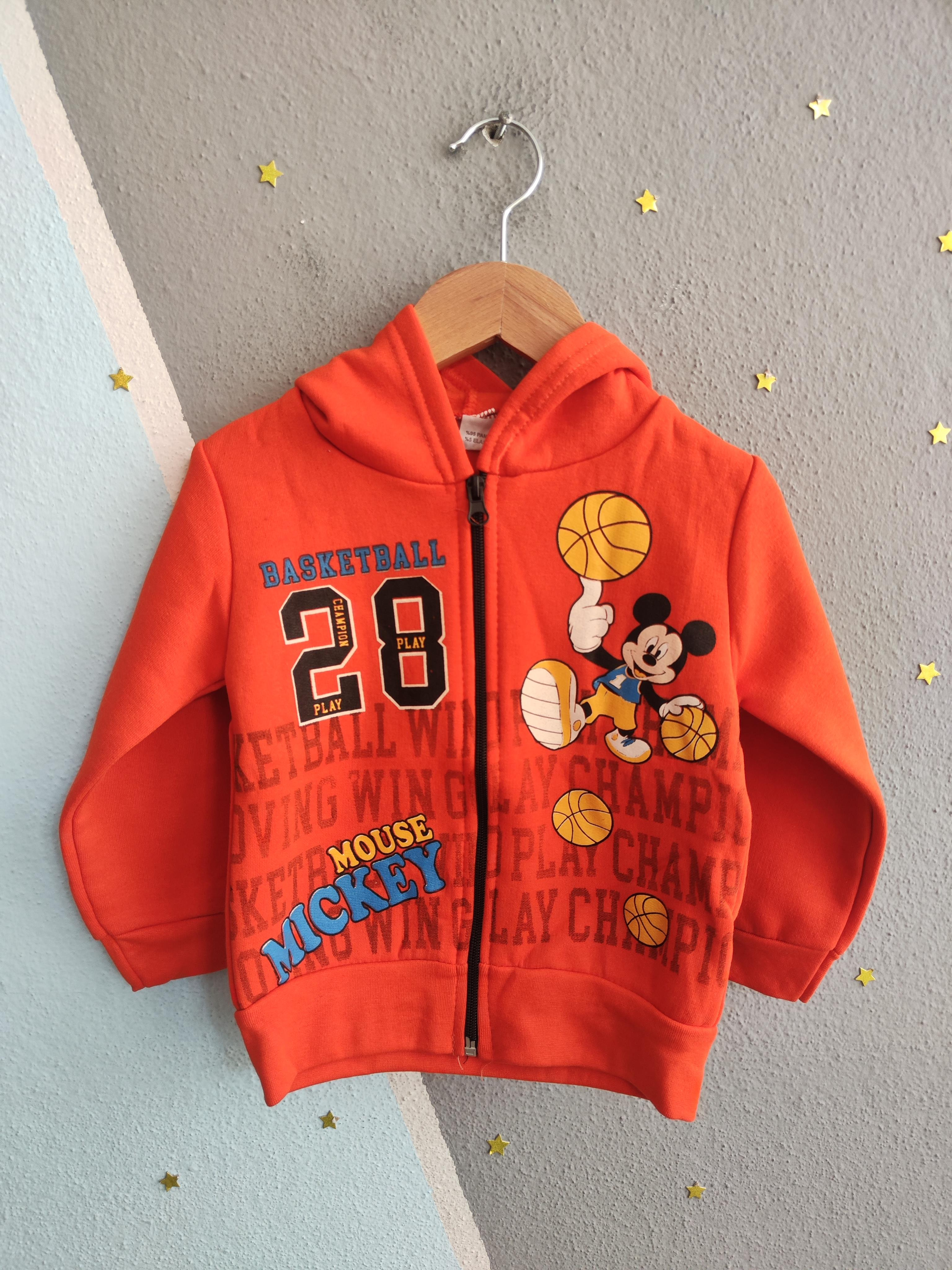 1762- Karakter Baskılı Kapüşonlu Erkek Çocuk Hırkası -Turuncu (1762)