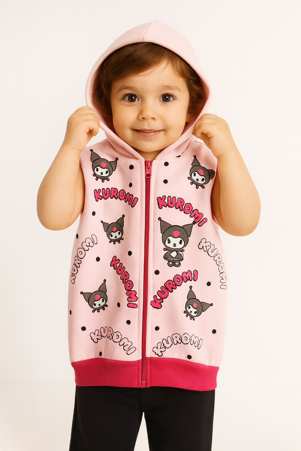 1766 - Karakter Baskılı Kapüşonlu Kız Yelek - Pembe (1766)