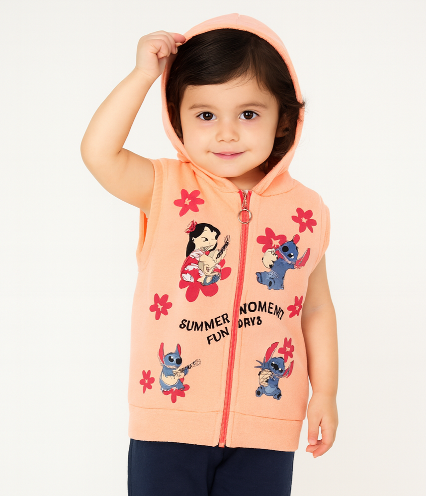 1767 - Karakter Desenli Kapüşonlu Kız Yelek - Somon