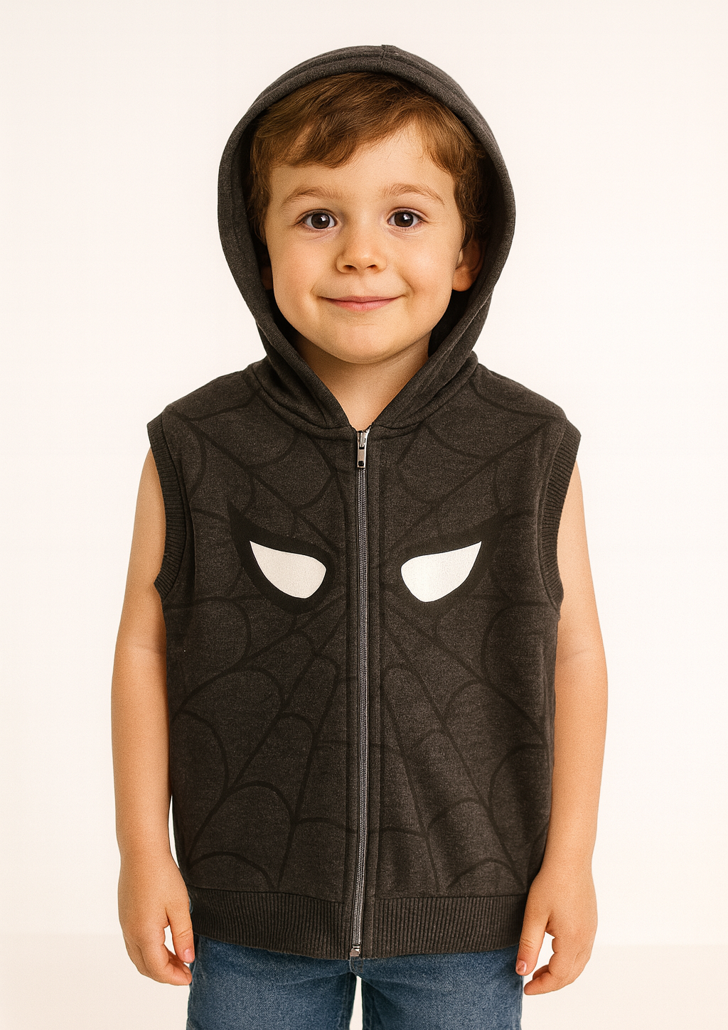 1768 - Örümcek Baskılı Kapüşonlu Erkek Yelek - Koyu Füme (1768)