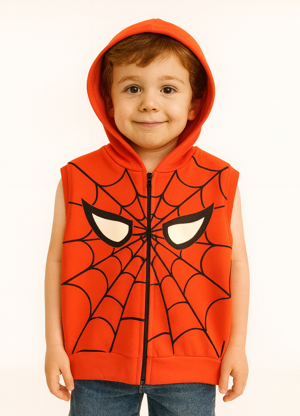 1768 - Örümcek Baskılı Kapüşonlu Erkek Yelek - Turuncu (1768)