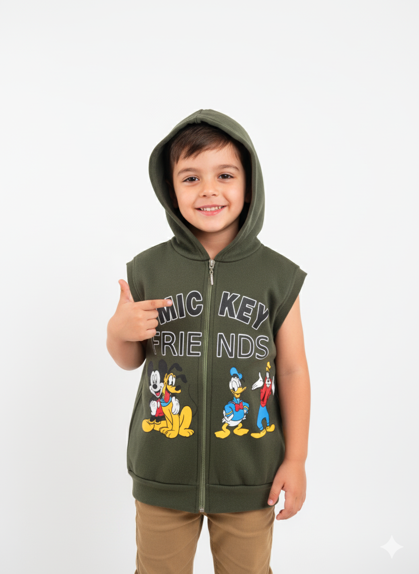 1769 - Friends Baskılı Kapüşonlu Erkek Yelek - Haki