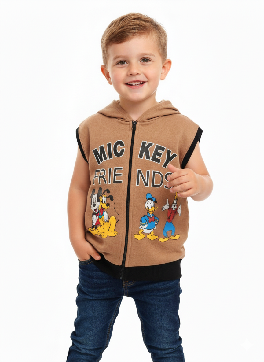1769 - Friends Baskılı Kapüşonlu Erkek Yelek - Kahve