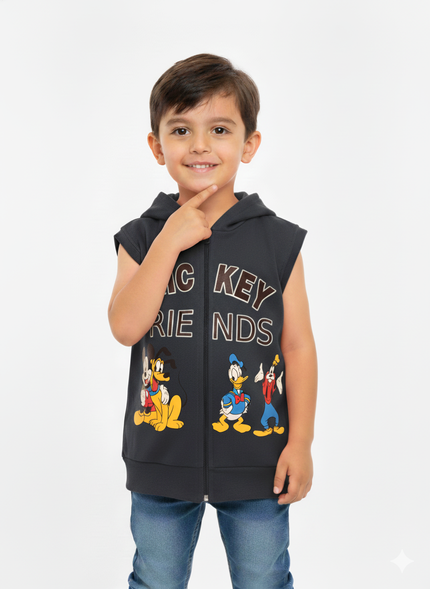 1769 - Friends Baskılı Kapüşonlu Erkek Yelek - Koyu füme (1769)