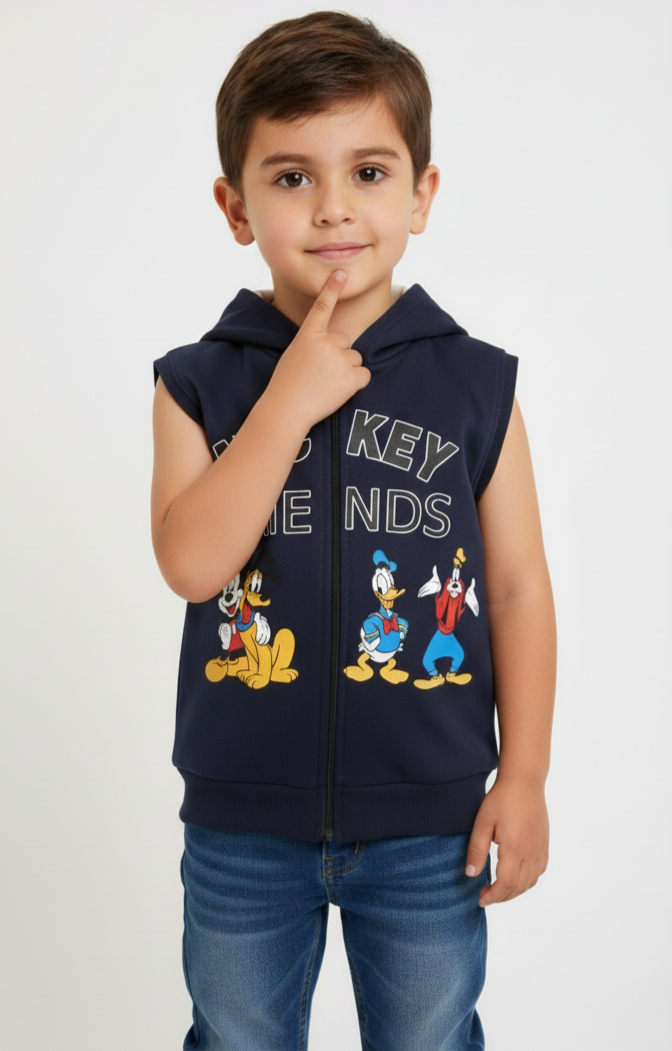 1769 - Friends Baskılı Kapüşonlu Erkek Yelek - Lacivert