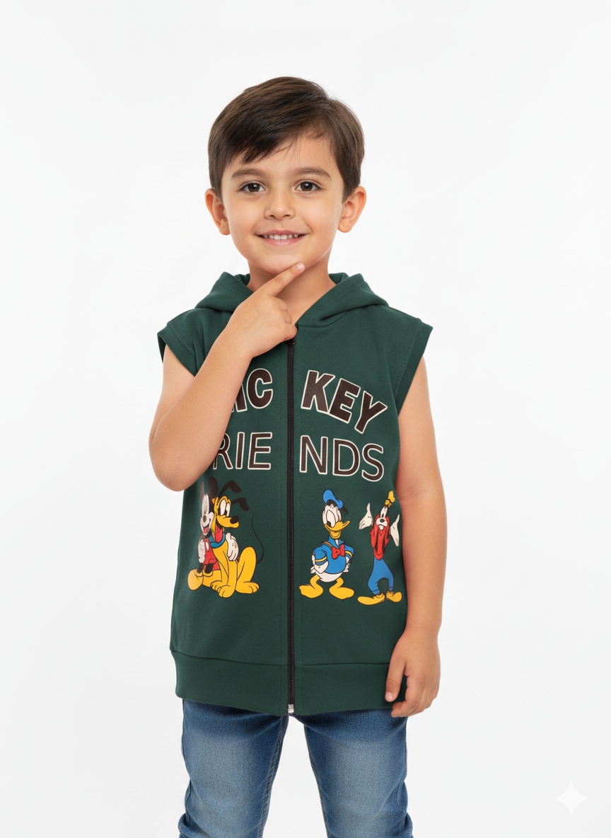 1769 - Friends Baskılı Kapüşonlu Erkek Yelek - Zümrüt