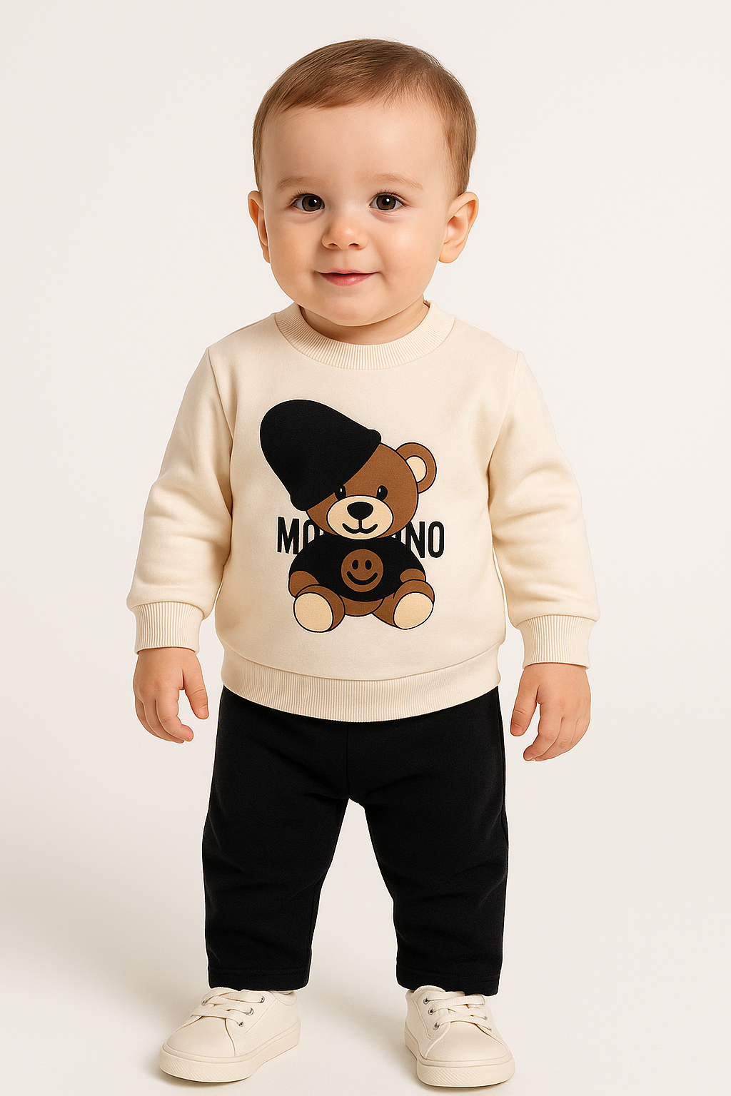 1777 - Şapkalı Ayı Baskılı Aylık Erkek Bebek Takım - Lacivert (1777)