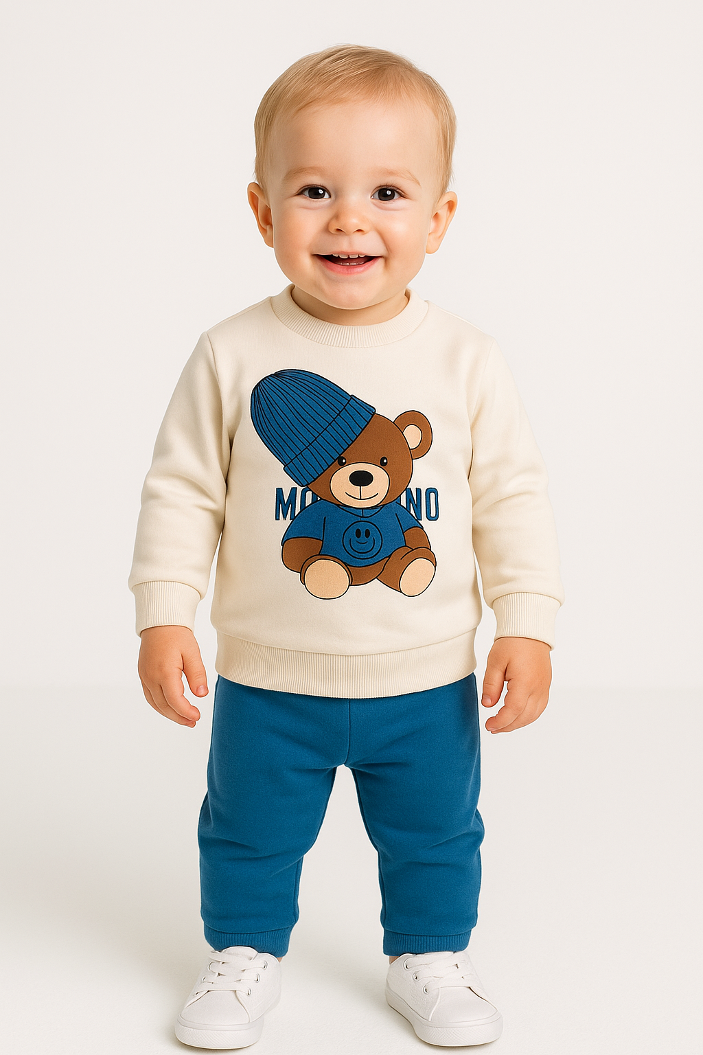 1777 -  Şapkalı Ayı Baskılı Aylık Erkek Bebek Takım -Mavi
