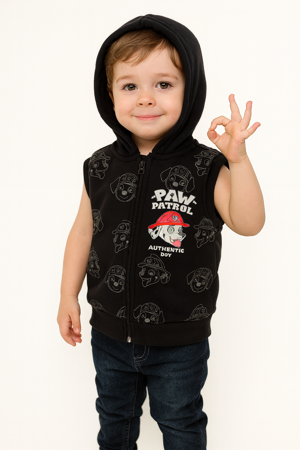 1782 - Karakter Baskılı Kapüşonlu Erkek Yelek - Siyah (1782)