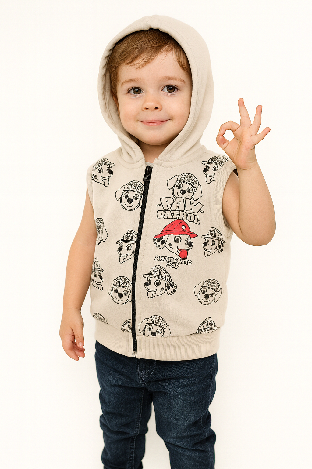 1782 - Karakter Baskılı Kapüşonlu Erkek Yelek - Taş