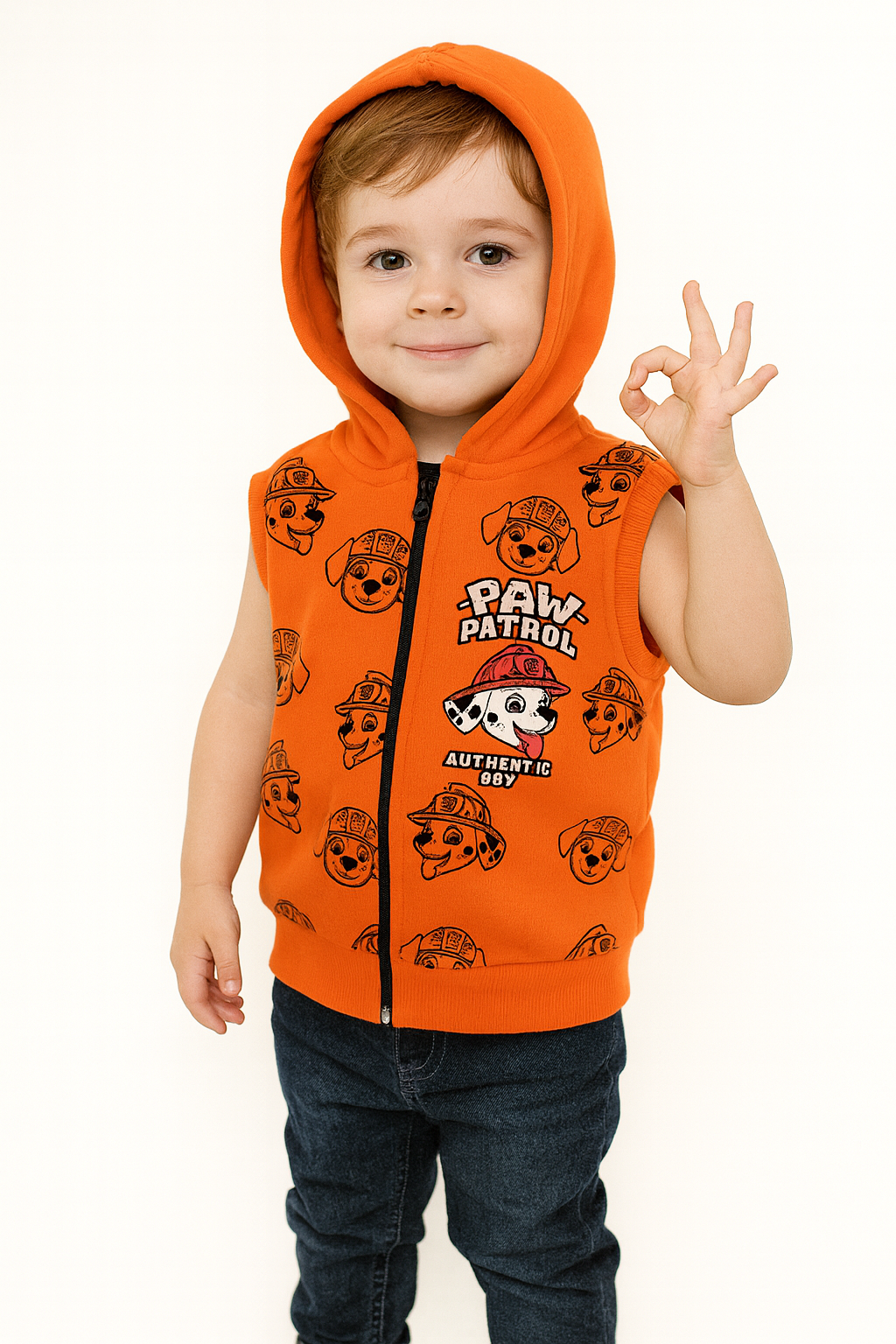 1782 - Karakter Baskılı Kapüşonlu Erkek Yelek - Turuncu