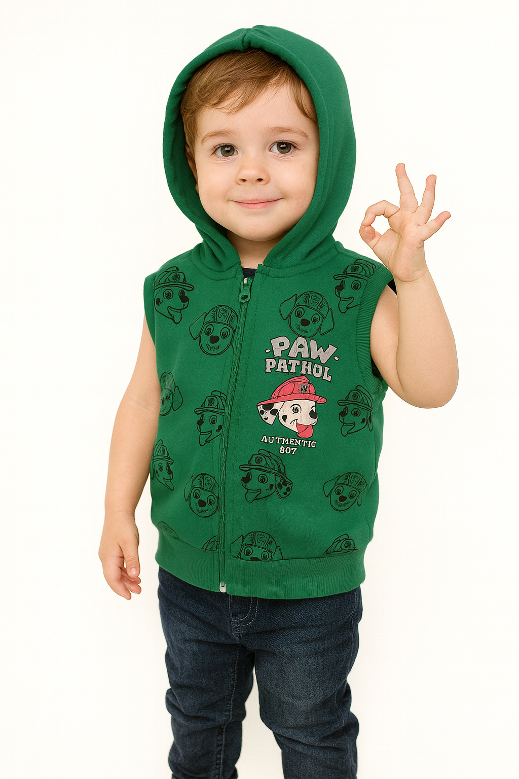 1782 - Karakter Baskılı Kapüşonlu Erkek Yelek - Yeşil