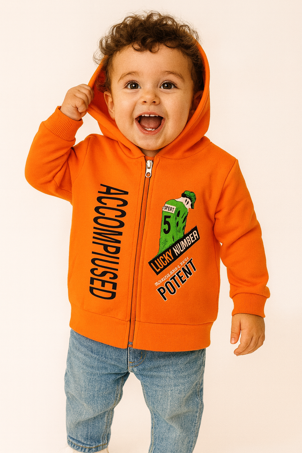 1783 - Şapkalı Adam Baskılı Kapüşonlu Erkek Çocuk Hırkası - Turuncu