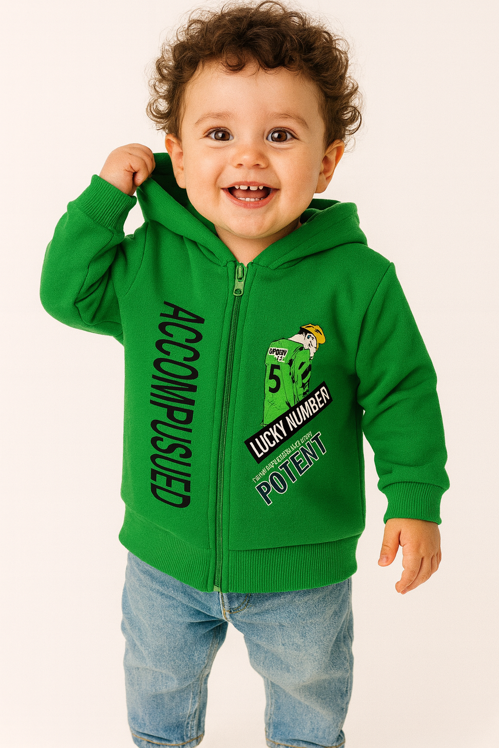 1783 - Şapkalı Adam Baskılı Kapüşonlu Erkek Çocuk Hırkası - Yeşil
