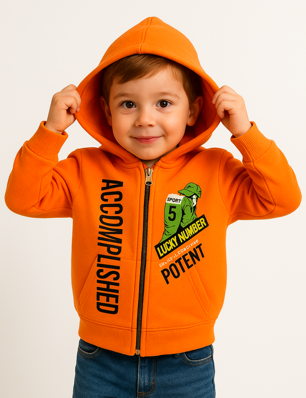 1784- Şapkalı Adam Baskılı Kapüşonlu Erkek Çocuk Hırkası - Turuncu (1784)