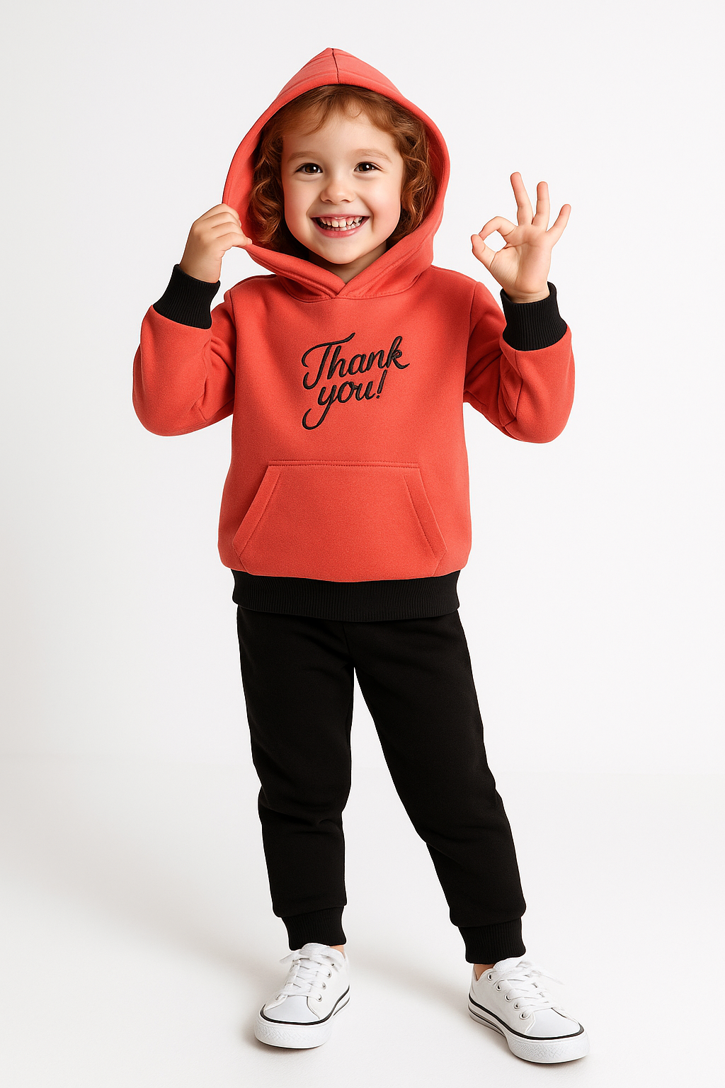 1787 - Thank You Yazılı Kapüşonlu Kız Takım - Nar Çiçeği (1787)