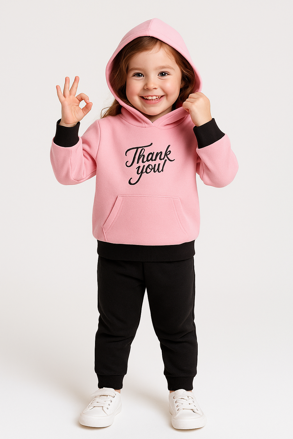 1787 - Thank You Yazılı Kapüşonlu Kız Takım - Toz Pembe