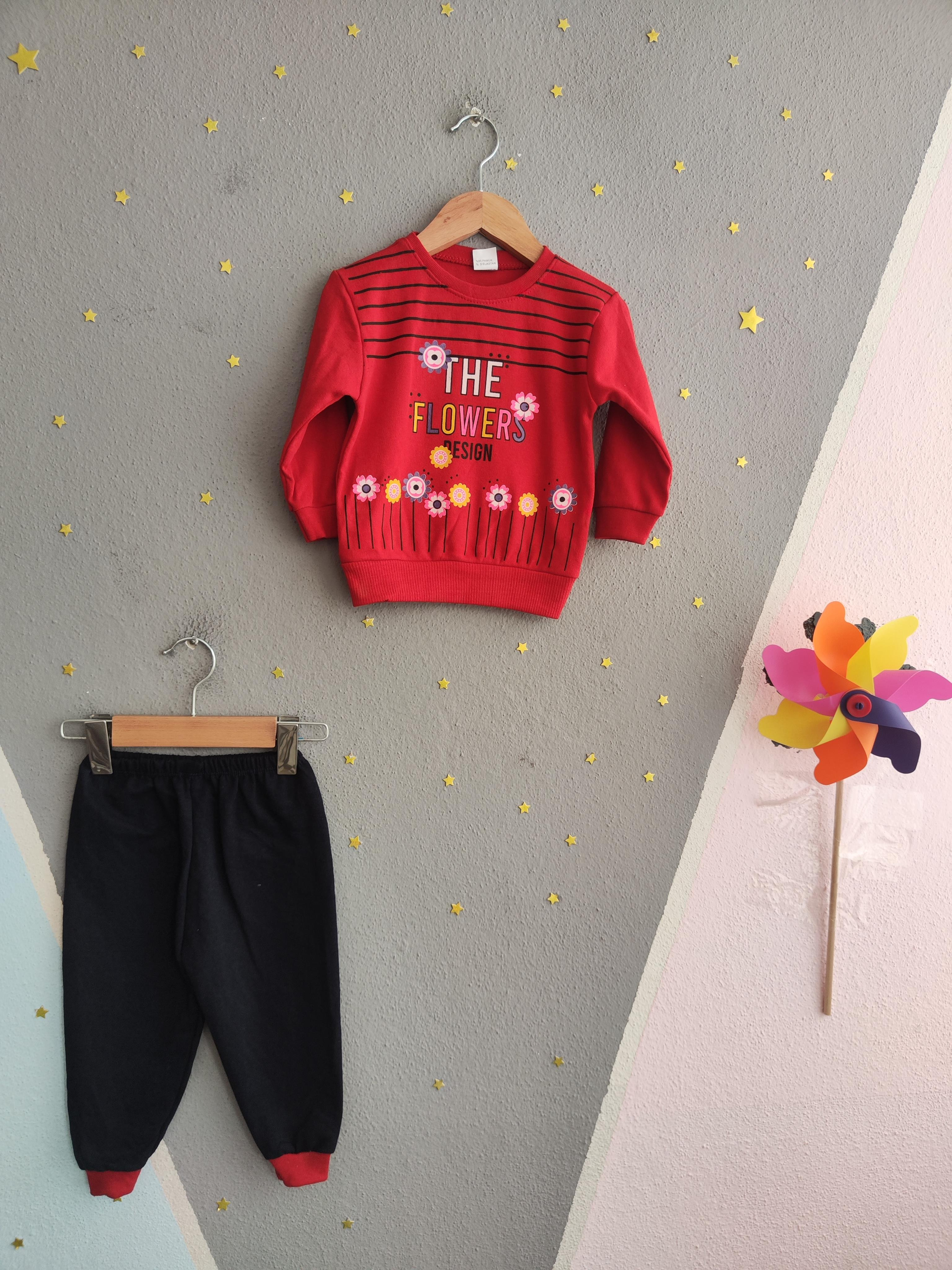 1795 - Çiçek Baskılı Aylık Kız Çocuk Takımı - Kırmızı (1795)