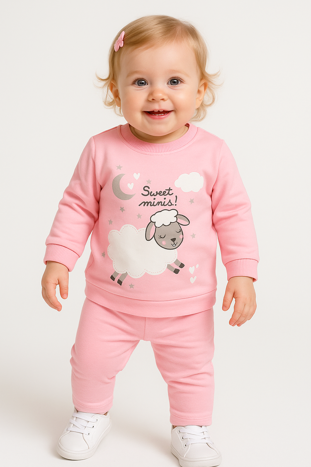 1807 - Kuzu Baskılı Aylık Kız Bebek Takım - Pembe (1807)