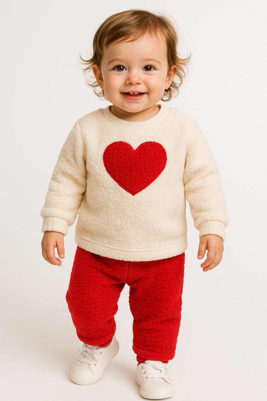 1810 - kalp Desenli Peluş Kız Çocuk Takımı - Kırmızı (1810)