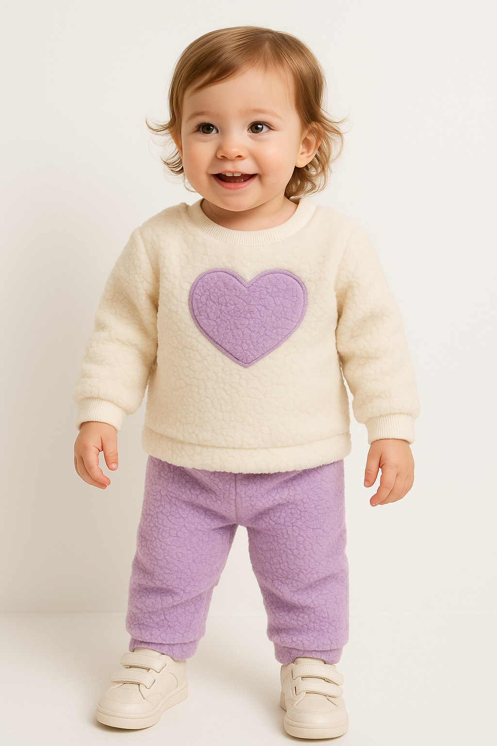 1810 - kalp Desenli Peluş Kız Çocuk Takımı - Lila (1810)