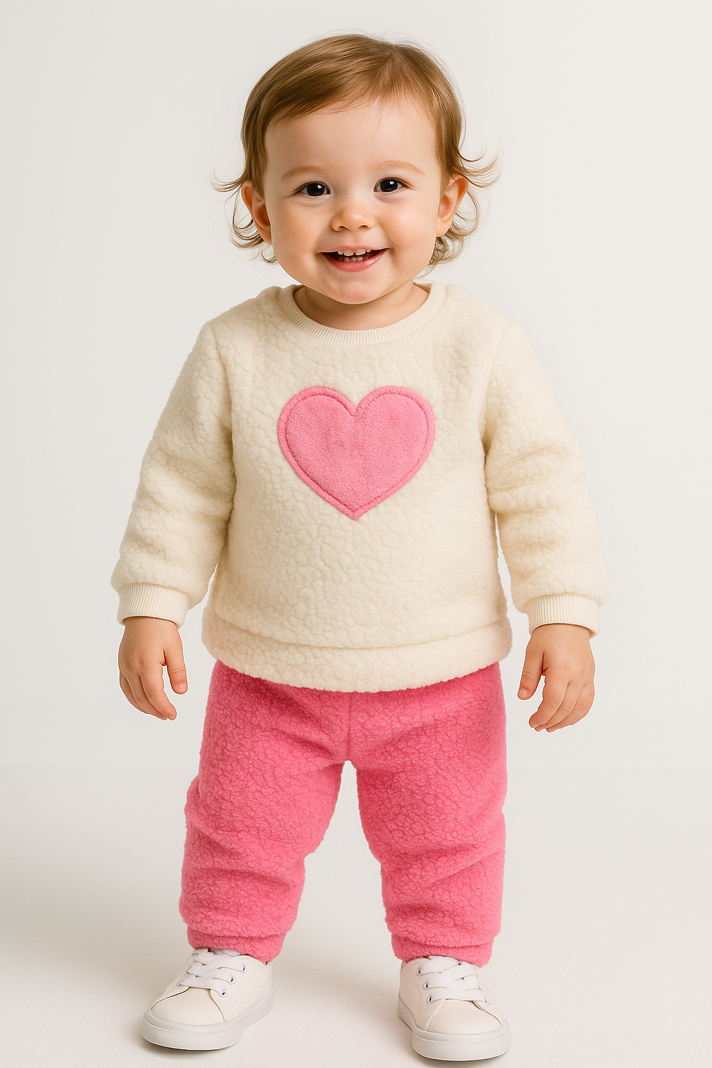 1810 - kalp Desenli Peluş Kız Çocuk Takımı - Pembe (1810)
